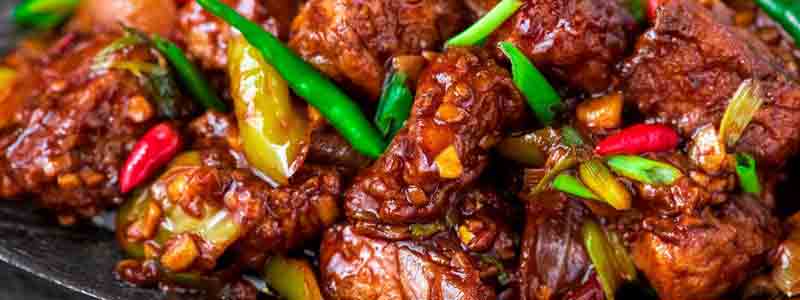 | Deep fried vegetable balls cooked in soya sauce and stir fried with garlic, ginger and green chilllies | ||